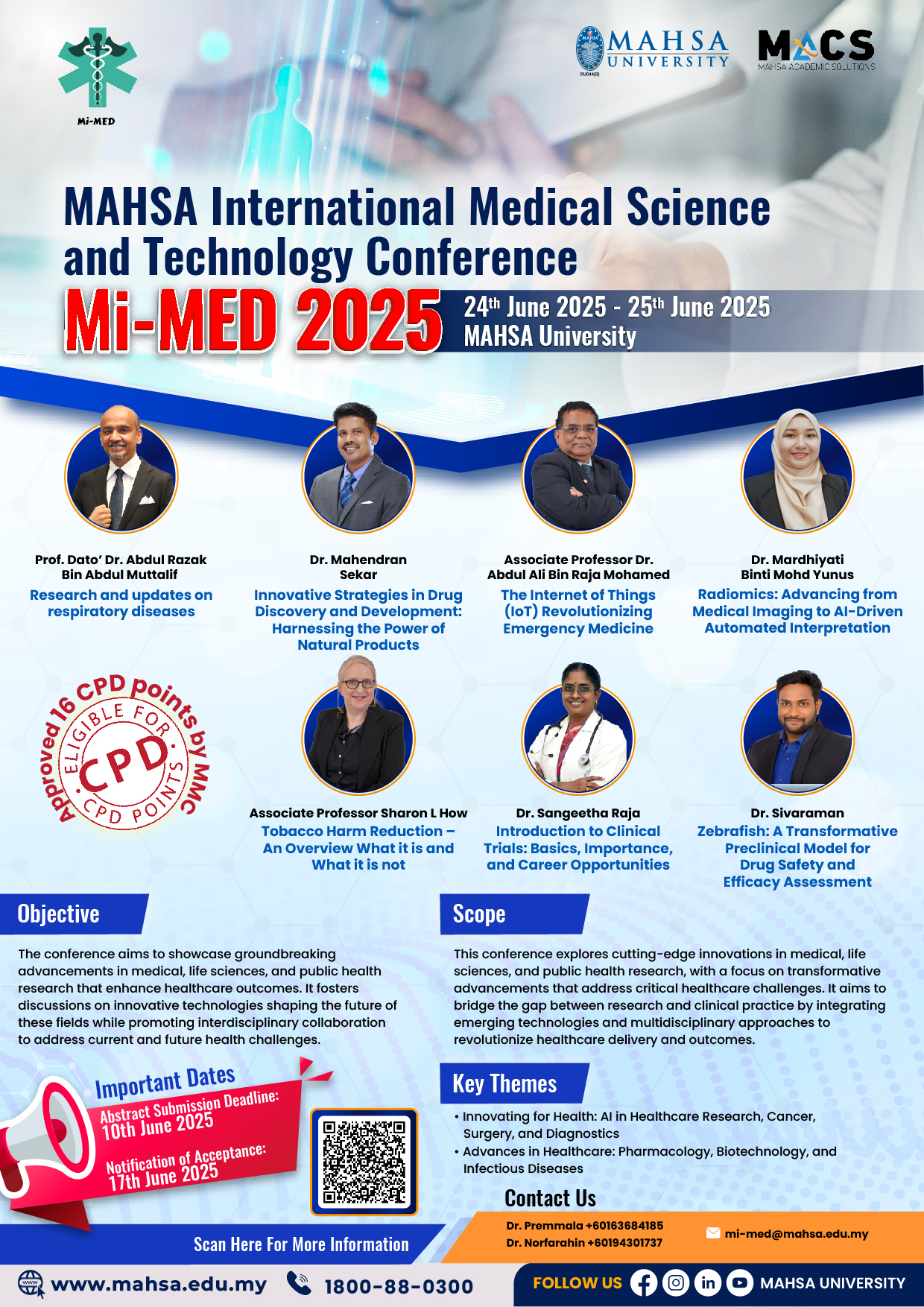 The objective of this conference is to highlight groundbreaking advancements in medical, life sceinces and public health research that contribute to improved healthcare outcomes. It aims to foster discussions on innovative techniques and technologies shaping the future of medical and life sciences while promoting interdisciplinary collaboration among researchers, academicians, and industry professionals to address current and future health challenges. .
