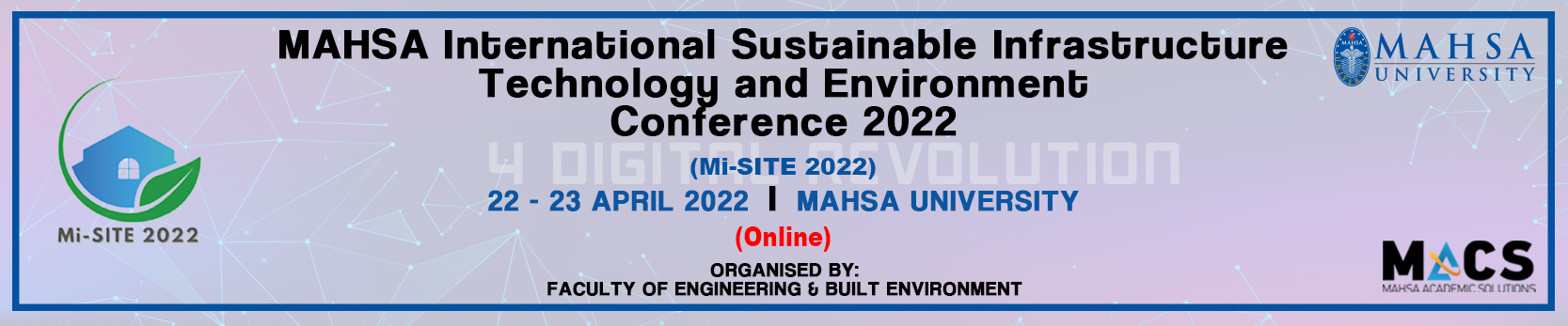 Mi-SITE 2022 aims to bring together academicians, researchers and industrial professionals from all over the world to share their experiences in the field of Civil Engineering, Construction and Built Environment. It provides a platform for researchers, educators and students to present and discuss the most recent innovations, practical challenges and solutions adopted in the above fields.