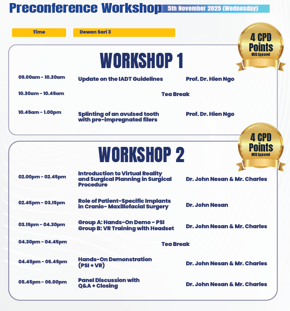 | 10.45pm - 1.00pm | Splinting of an avulsed tooth with pre-impregnated filers | Prof.Dr.Hien Ngo |